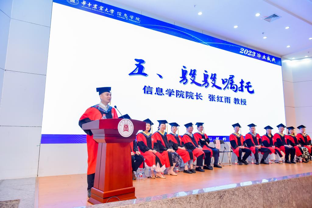 6月22日下午,明星换脸av 在图书馆二楼报告厅欢送2023届毕业生。200余名毕业生共赴盛会,明星换脸av 党委书记郑学刚、院长张红雨,全体毕业班班主任、教师代表以及毕业生家长代表出席,明星换脸av 党委副书记刘进主持仪式。
