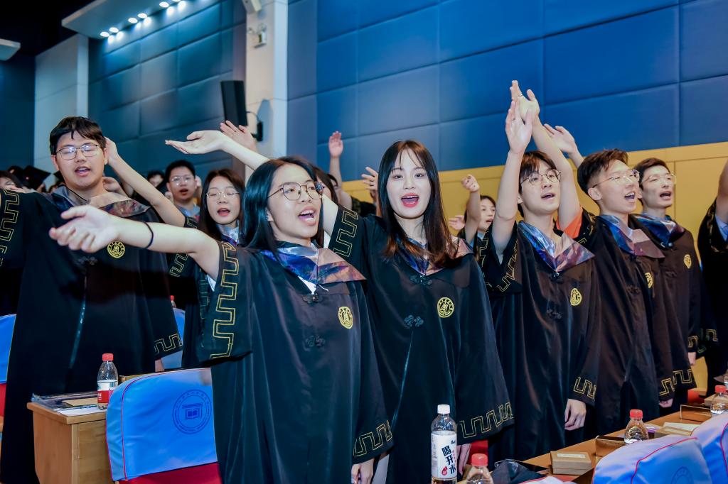 毕业证书颁发仪式之后,所有师生和家长代表起立,共同唱响《光阴的故事》,大家有节奏地挥动着双手,向美好的大学时光告别。
