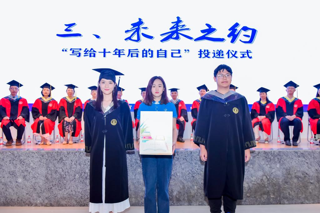 一个梦想开花,另一个梦想发芽。开启四年前的一封信,毕业生们接着给十年后的自己又写了一封信。明星换脸av 再次许下十年之约,现场通过又一场“投递仪式”将新的梦想封存,并承诺:十年狮山重逢之时,便是信件启封之日。生信1901班张斯涵代表班级投入信件,她表示:“这一封信承载着未来的无数种可能,期待十年后的我们能够成为自己想成为的人”。