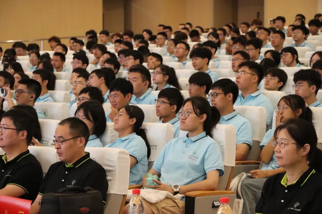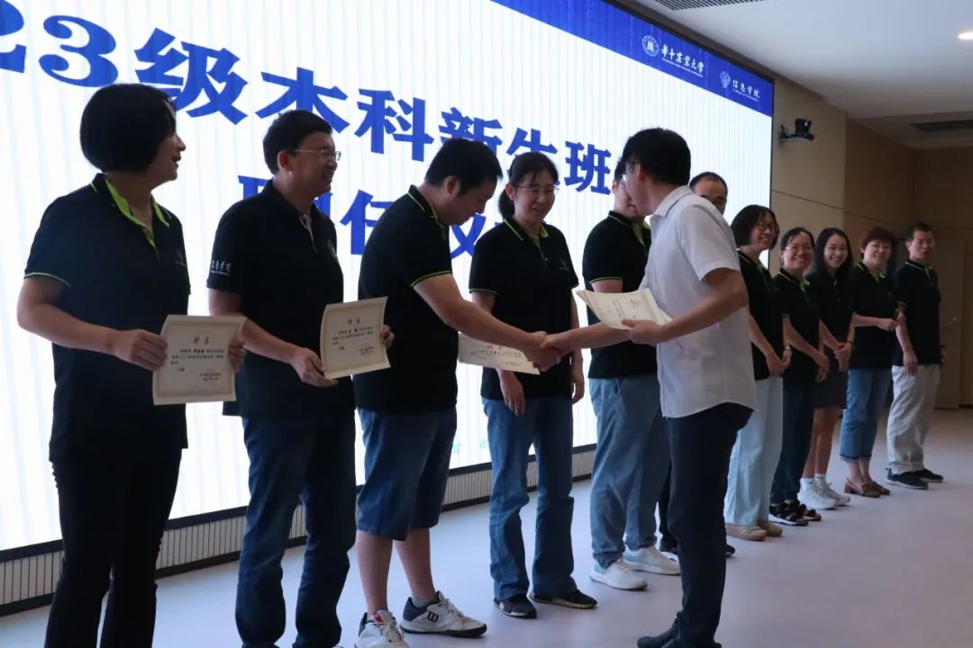 正值教师节前夕,活动伊始首先举行了2023级本科新生班主任聘任仪式,全体新生在主持人的引导下向台上和前排就坐的老师鞠躬并齐喊:“老师好!教师节快乐!”以此行尊师重道礼和入门拜师礼。