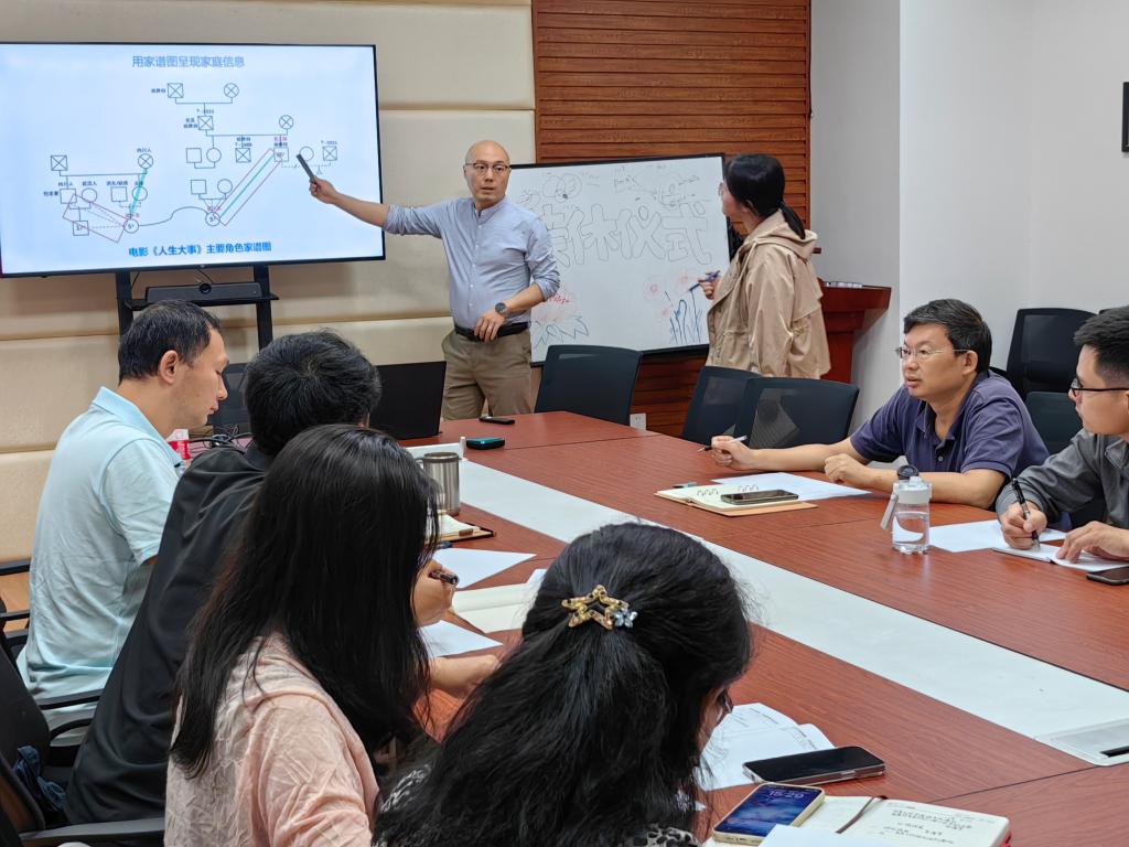 在余海军的指导下,在场班主任老师们纷纷在纸上划下对应家庭的家谱图,余老师以其中一个学生家庭为例,针对性的讲解演示其运用。并与在场老师们分享如何“以图识家”,从家谱图中建构家庭整体情况,获取更多关于个体家庭背景的信息,从而为学生工作提供更有针对性的支持和指导。