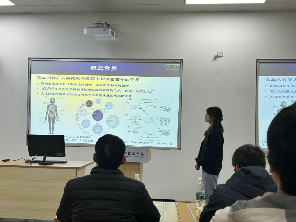 口头报告环节,张可欣同学进行了题为《基于异质因果元路径的图神经网络预测基因-微生物-疾病三元关联》的汇报——通过建立基因型与疾病的联系,融入基因-微生物-疾病的因果关系,张可欣构建异质图神经网络,通过肠道微生物群将人类基因组进化与疾病联系起来,从而实现大规模预测基因-微生物-疾病之间的关系。该工作获得在场专家一致认可,荣获本次口头报告一等奖。墙报展示环节,生动形象的墙报吸引了不少同学老师驻足,引起热烈讨论。经在场专家评委打分、同学投票,许晋生、张志文、张晓敏、黄文东、张平、明路长等6人获评墙报展示一等奖。
