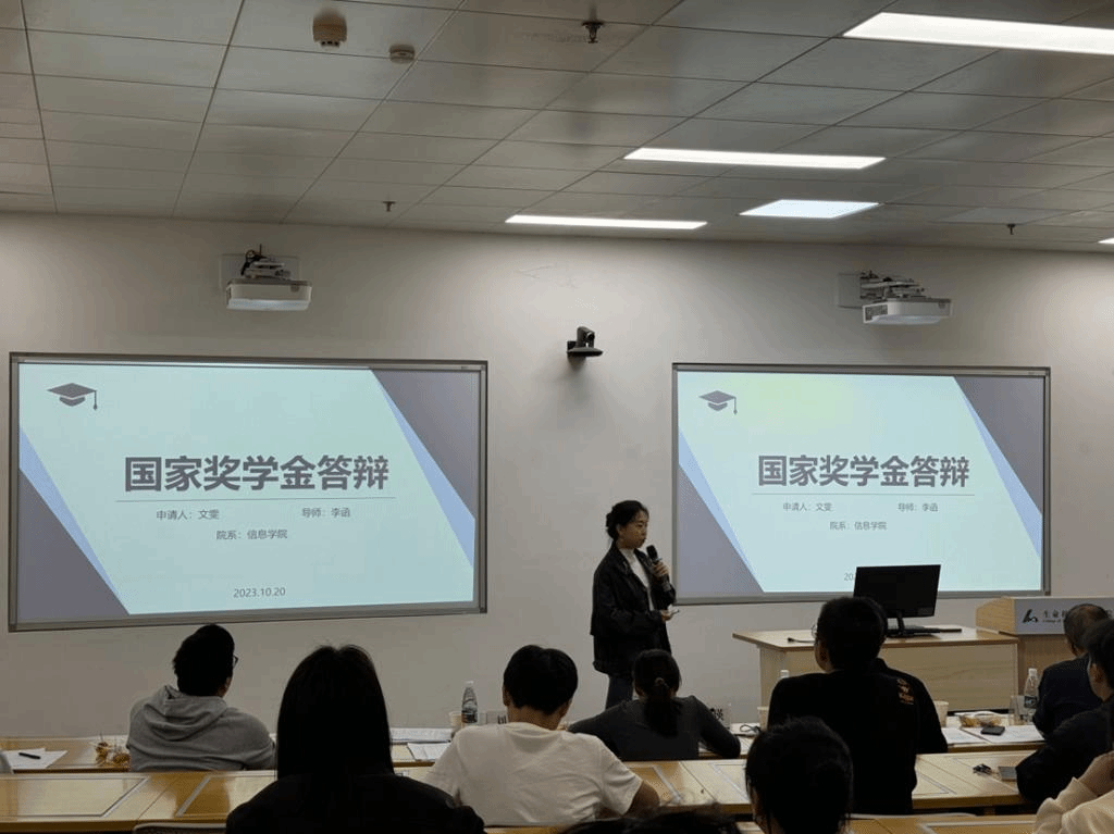 依据《明星换脸av 研究生国家奖学金评审实施方法》,经个人申报、明星换脸av 初审,共有4名博士研究生、10名硕士研究生进入本次国家奖学金终审候选人答辩环节。会上,各位候选人围绕学业成绩、科研成果、学术活动、社会实践等方面进行了精彩的个人风采展示。