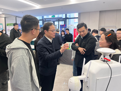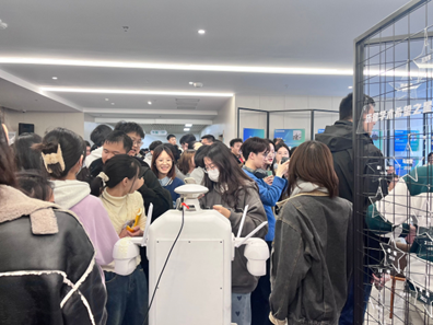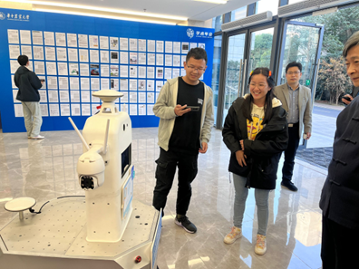 众位师生纷纷围绕智能巡检机器人展开讨论,并与机器人进行互动,机器人的精准导航和高效执行能力让大家赞叹不已。一时间,智能巡检机器人成为了各位师生的的拍照打卡对象,大家纷纷拿出手机与它合影留念,记录这一特殊的时刻。