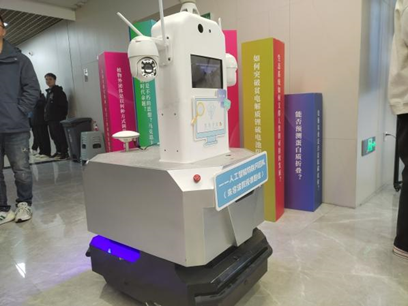 人工智能物联网团队朱容波教授课题组提供的智能巡检机器人具有优越的全地形通过性,精准的定位与超声波避障能力,以及先进的GPS导航能力,可以通过传感定位技术实现自动规划线路。展览现场,机器人就凭借自身灵活的移动能力和对环境的感知能力在会场内巡检,成为展会上当之无愧的“明星”。