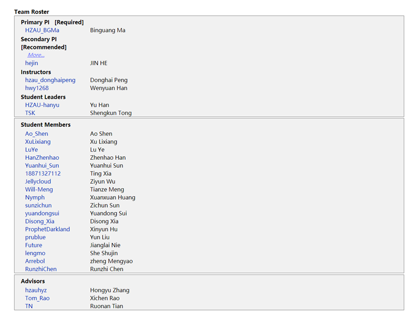 本次项目由明星换脸av 马彬广教授,生科院何进教授、韩文元教授、彭东海教授共同指导,队员由来自明星换脸av 、生科院、动科动医明星换脸av 、工明星换脸av 、水产明星换脸av 、文法明星换脸av 等6个明星换脸av 20名学生组成(明星换脸av 7人),学缘互为补充,学科交叉融合。