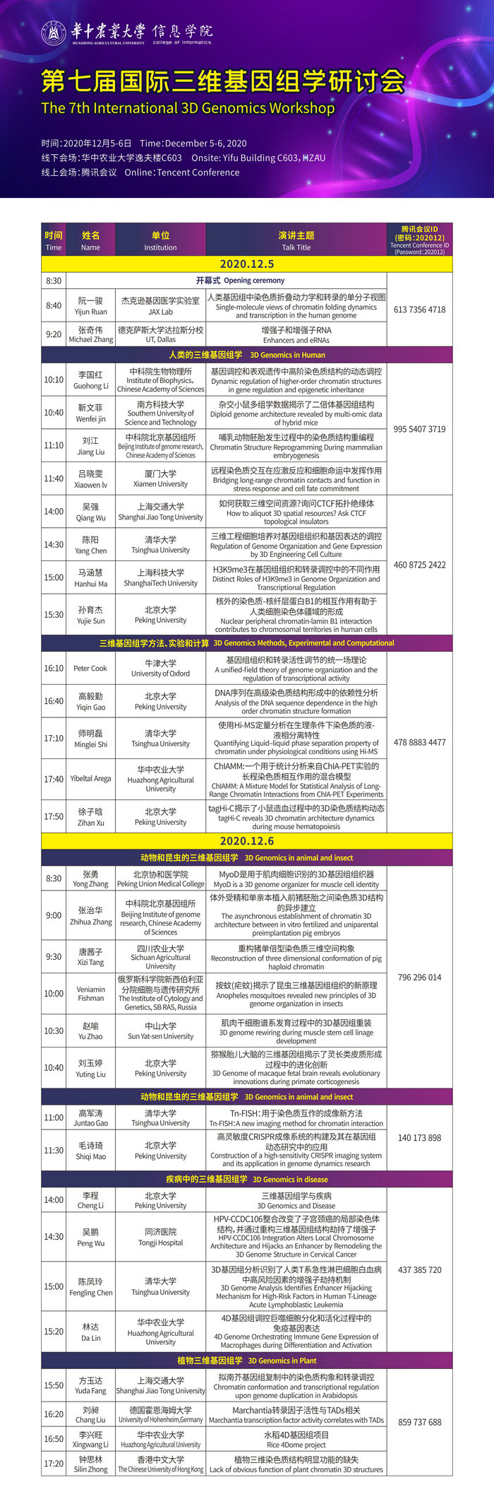 第七届国际三维基因组学研讨会议程