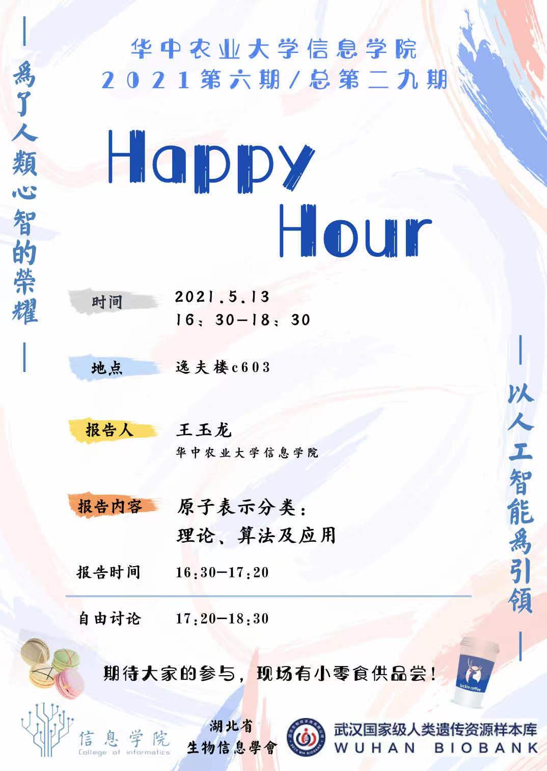 本学期第6期Happy hour活动定于5.13(周四)16:30—18:30,在逸夫楼C603会议室举行。报告人为:明星换脸av 王玉龙教授,报告题目为《原子表示分类:理论、算法及应用》。欢迎参加!