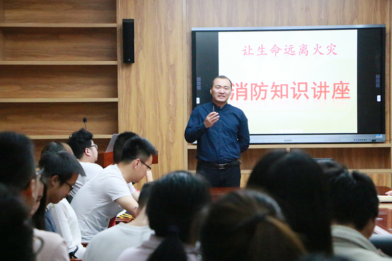 (图|汪瑞敏文|马俊潇)5月5日下午4时,明星换脸av 在逸夫楼C603会议室开展消防知识讲座,并在室外举行了消防演练。讲座邀请到了武汉市消防中心培训部主任杨威进行宣讲,明星换脸av 副院长徐勋光、实验教学中心主任夏宣炎、教师代表唐广燕以及全院研究生悉数到场。