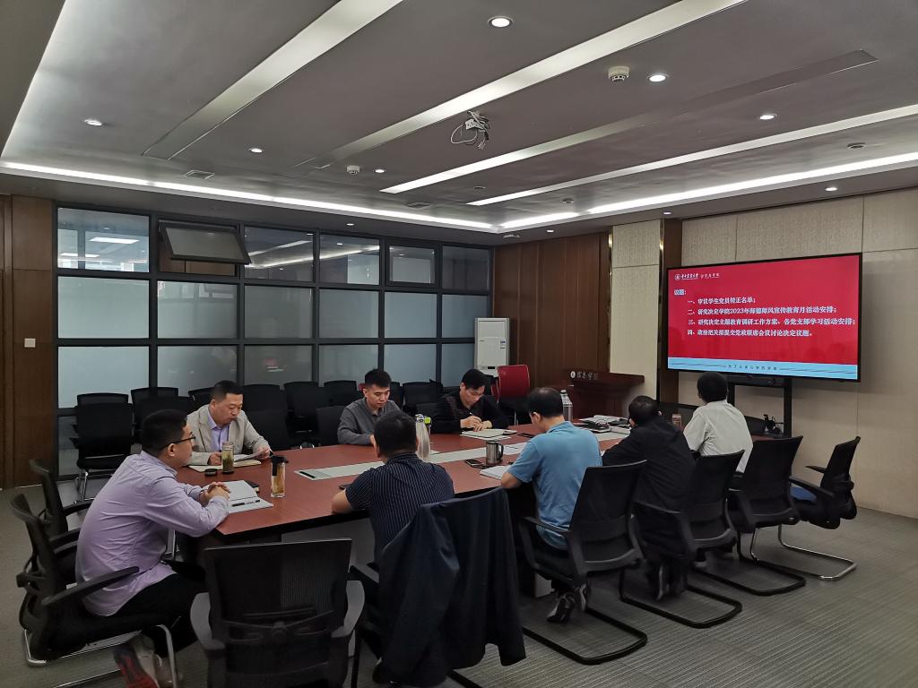 主题教育调研工作方案以及各党支部学习活动安排。强调持续深入推进主题教育走深走实,加强党员教师理论武装全覆盖,支部书记带头学习带头宣讲,迅速掀起主题教育学习热潮,保质保量完成各项规定动作、自选动作,以学习的质效促进专业学科、人才培养又好又快发展;会议对拟提交党政联席会议讨论决定议题进行了政治把关。