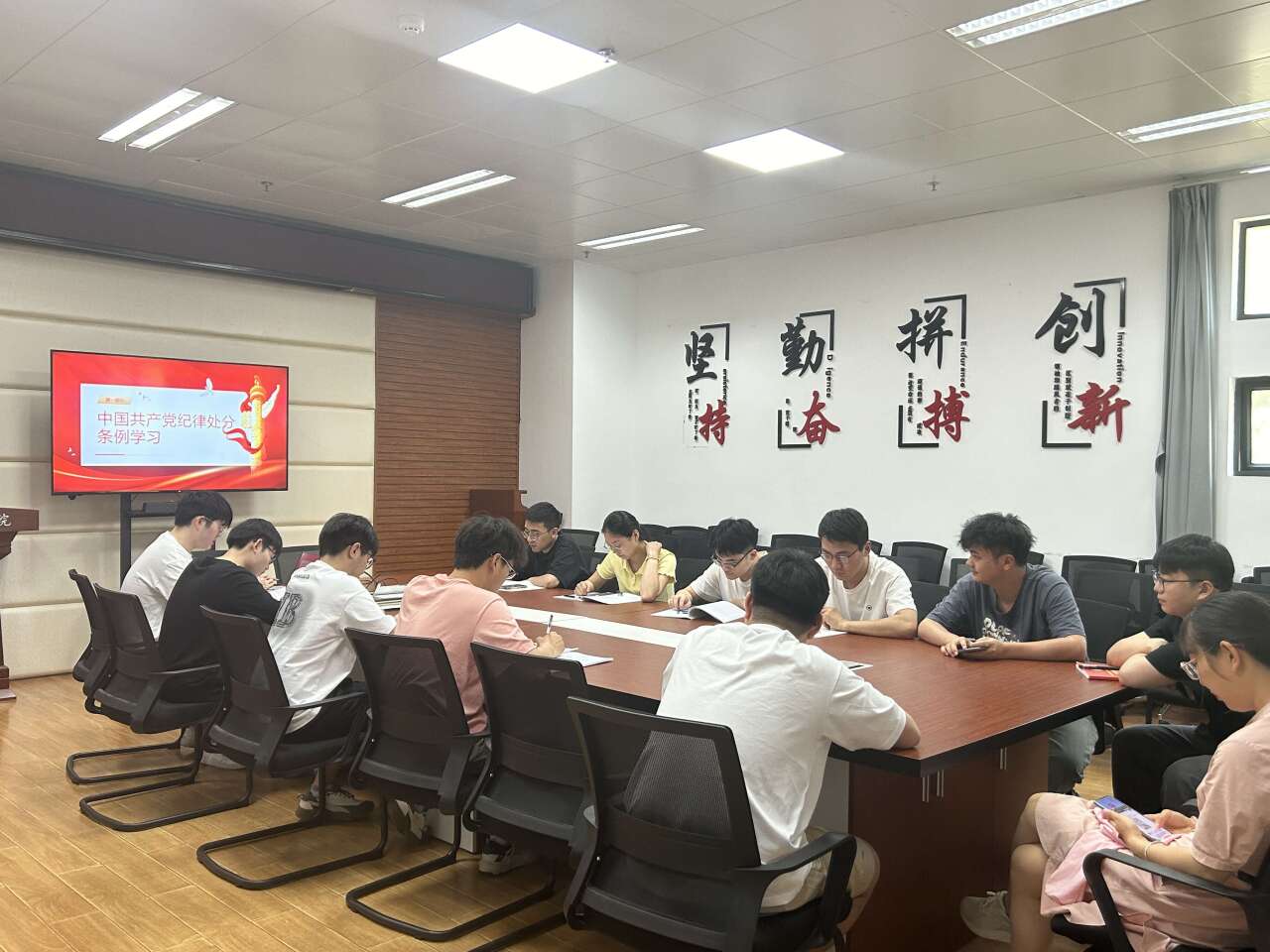 明星换脸av 党政领导郑学刚、沈婧芳、章文等参加了联系支部活动,派驻广州公司临时支部也开展了主题研学。为保证学习质效,明星换脸av 为师生党员每人配发《条例》单行本,为党委委员、各教工党支部书记、辅导员配发《〈中国共产党纪律处分条例〉修订前后对照》等辅导读本,切实推动党纪学习教育入脑入心。