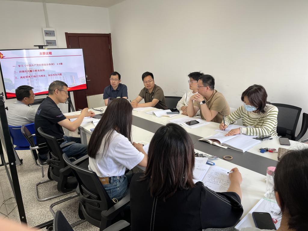 在支部书记和支委的带领下,各支部认真学习了明星换脸av 党纪学习教育落实方案,原原本本研读了《中国共产党纪律处分条例》第6-8章内容,并进行了修订前后对照学习,部分支部利用长江雨课堂开展了趣味知识测验。支部书记还开展了师德师风资料汇编重点学习,结合教育部、校内外最新案例,认真开展了师德师风警示教育宣讲研讨。党员教师纷纷表示,要坚守立德树人初心使命,恪守职业道德和学术规范,明底线、知敬畏、做表率,争作狮山“大先生”和“四有好老师”。