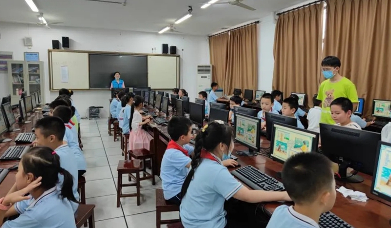 (文|段文盈 图|喻越 审核人|喻越)9月15日下午,附属学校主办、明星换脸av 本禹志愿服务队承办的“少儿编程”(2021-2022学年第一学期)第一讲在华农附校计算机教室开展。华农附校三年级(1)班的学生参加了本次课程。