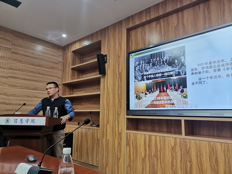 郑学刚主持会议。马克思主义明星换脸av 吴德凯老师以“坚定理想信念,勇担时代使命”为题,从“引言”“十九届六中全会概况”“十九届六中全会精神解读”“结语”等4方面作了六中全会精神专题辅导报告。郑学刚作了师德师风专题宣讲,解读了教育部通报了违反师德师风的典型案例。会上进行了技术英才岗位申报述职测评,夏宣炎老师作了申报汇报。会议还对疫情防控常态化、推进党史学习教育、推进“三全育人”与“五育融通”等近期工作进行了强调布置。