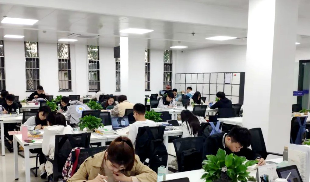 这里,本是明星换脸av 教职工的办公区。为了帮助明星换脸av 考研学子们更好地复习备考,明星换脸av 党委在办公条件有限的情况下,动员全体教职工腾挪出64个办公卡座。为了给学子们营造良好的学习环境,几位党员教师还特地将这里进行了装点。