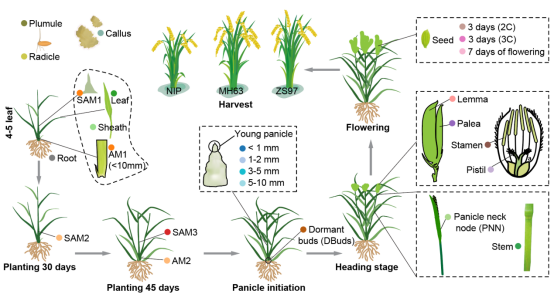 图1水稻全生育期调控组图谱的取样组织和时间点