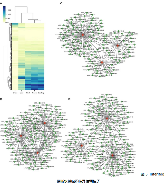 转录因子(TF)通过与靶基因(TGs)的特定DNA序列相结合调节其表达,每个TF与其TGs会形成一个调控子(regulon)并完成生物学功能。植物组织中特异表达的regulon在协调相应器官的发育过程中起着至关重要作用。基因转录和翻译需要消耗物质和能量,研究与农艺性状密切相关的组织特异性表达regulon有助于提高物质和能量的利用效率。因此,研究植物组织特异性基因调控可揭示基因在特定组织中的表达模式,也有助于揭示基因间调控关系的一般规律和动态变化。