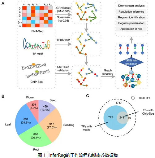 高俊祥团队在 aBIOTECH 发表题为“Inference and prioritization of tissue-specific regulons in Arabidopsis and Oryza” 的研究论文。在该研究中,作者提出一种基于多组学数据和图神经网络的植物组织特异性调控子的推断方法,并将其命名为InferReg。
