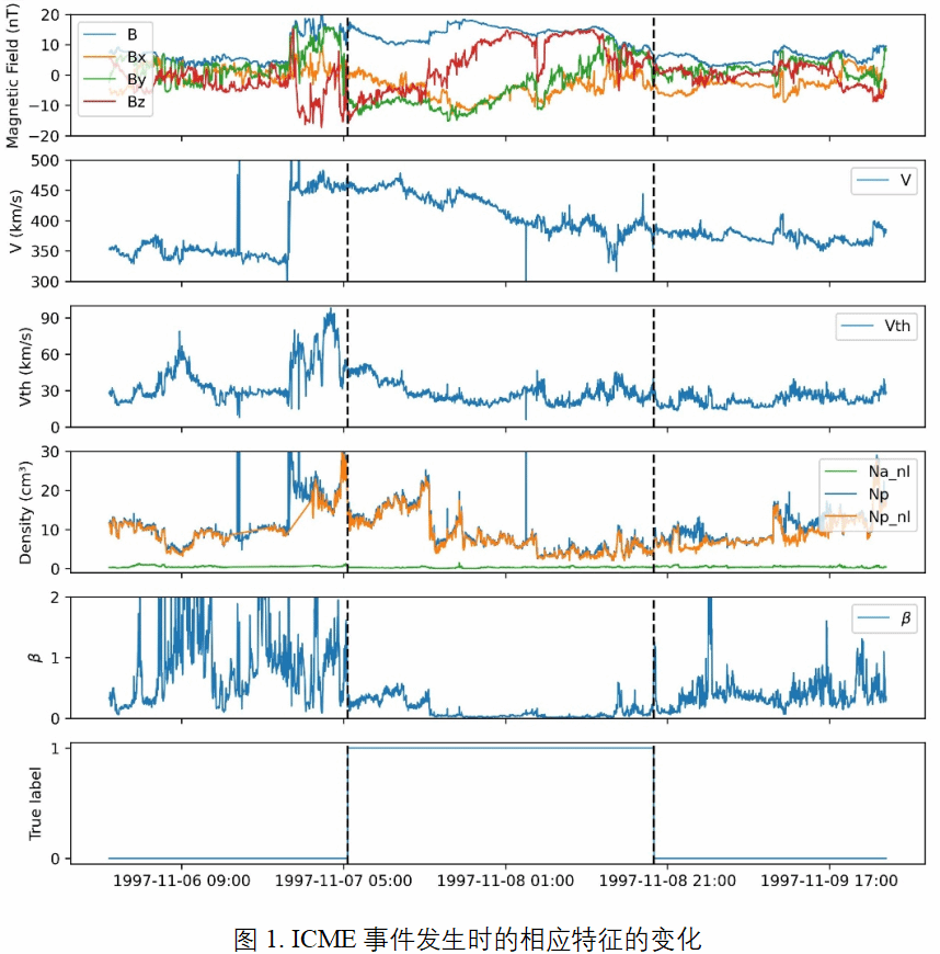 日冕物质抛射(ICME)是太阳系最剧烈的爆发现象之一,如图1所示,其引发的高能粒子风暴可导致卫星故障、电网瘫痪,甚至威胁宇航员生命安全。传统ICME检测依赖专家人工分析航天器数据,需耗时数周比对磁场、粒子密度等多维参数,且不同团队标准不一,难以应对深空探测数据量爆炸式增长的挑战。