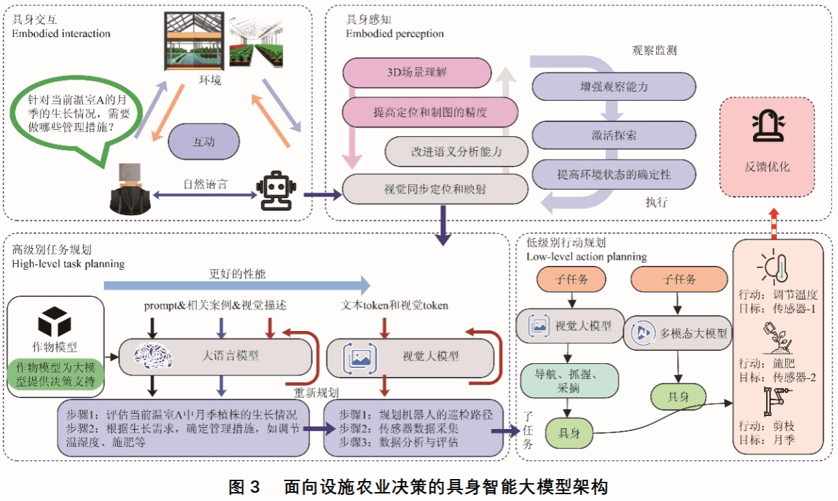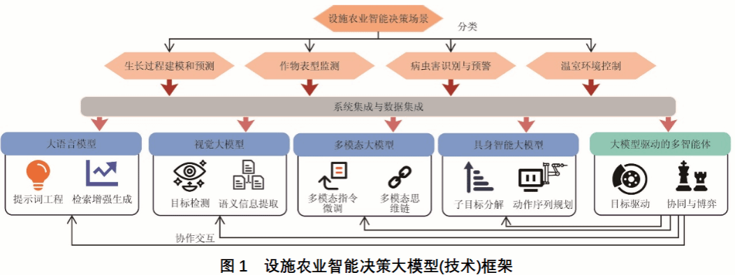 冯在文团队该项研究围绕温室环境控制、作物生长建模与预测、病虫害识别、作物表型监测等关键应用场景,系统构建了涵盖5大类大模型的关键技术体系:借助大语言模型结合提示工程与RAG技术,提升农业数据分析准确性;通过对视觉大模型进行农业场景微调,有效应对复杂环境下的图像识别挑战;多模态大模型整合图像、文本等多源数据,在病虫害识别任务中表现出优越性能;具身智能大模型通过任务分解与设备联动,实现温室环境的智能调控;多智能体系统则通过协同机制,实现对农业环境的动态优化与整体决策等。