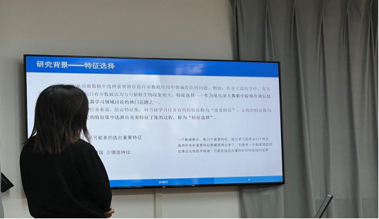 刘力源,23级博士研究生。刘力源同学汇报了自己之前的研究工作以及现在的研究方向。他的第一份工作与梯度学习相关,梯度学习(GL)以估计目标函数的梯度为目的,在变量选择问题中受到了广泛的关注。为了减轻对于噪声的敏感性,他利用倾斜ERM准则提出了一种新的GL模型,并从函数逼近的角度建立了该模型的理论支持。除此之外,还对分布外泛化的梯度学习模型给出了泛化误差的上界,并在有界密度比的温和正则性条件下证明了它的理论一致性,推广了i.i.d.框架下的经典GL结果。刘力源同学以第一作者身份发表论文:“Gradient Learning under Tilted Empirical Risk Minimization”(entropy已发表)。