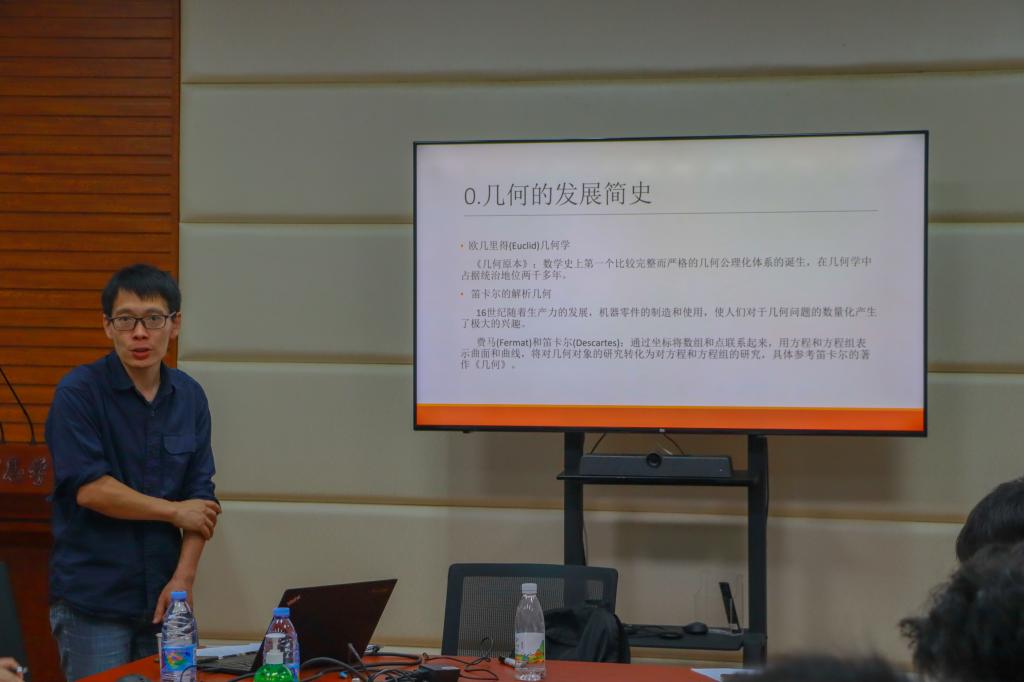 周林峰以“从三角形到流形——漫谈微分几何及其应用”为题,从三角形到流形,从基础到现代微分几何,周教授按照几何的发展简史,着重讲解微分几何、拓扑学中的部分经典定理,并以此为基础,带领师生深入了解微分几何及其应用,进而指出微分几何学的研究对数学其他分支以及力学、物理学、工程学等的影响是不可估量的。