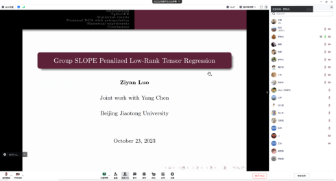 教授、博士生导师罗自炎老师受邀参加线上学术分享会,以“Group SLOPE Penalized Low-Rank Tensor Regression”为题作学术报告,报告会吸引30名师生参与。