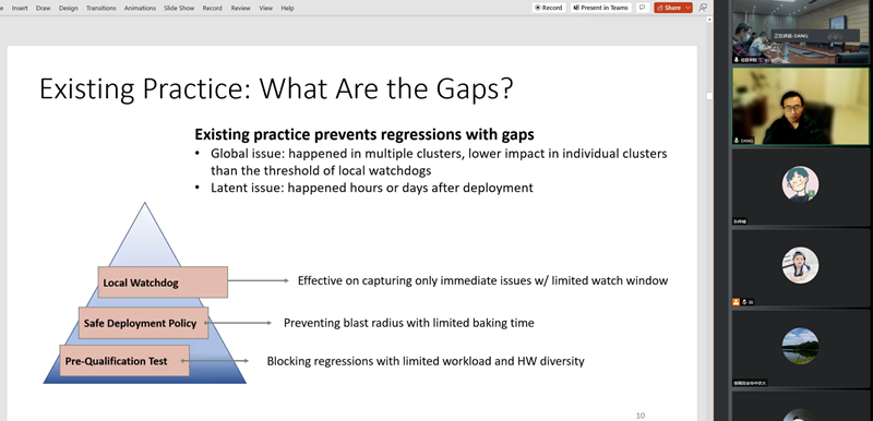 党映农博士重点介绍了其团队研发的Gandalf模型,提供端到端地分析在大型系统基础设施中安全部署的服务。Gandalf模型能够分析各种故障信号,使用一种空间和时间相关算法将每个信号与所有正在进行的部署相关联,并利用集成排序策略来判断故障信号对软件部署的影响。该模型可自动检测云服务器的安全状态,从而为工程师提供检测证据及调查线索,极大程度上提高了效率,与之前的工作相比该模型在性能上获得极大提升。