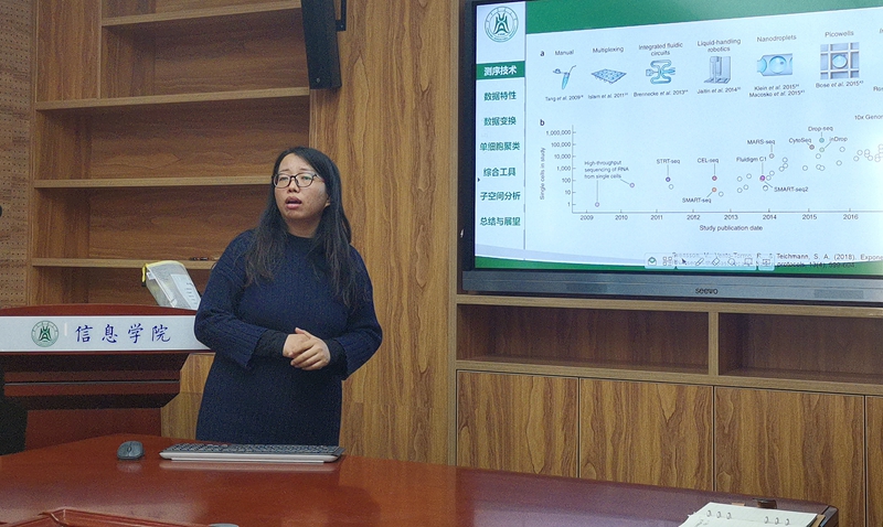 (图文|李薪星 审核人|史倩倩)12月2日下午,明星换脸av 2021年第22期的“Happy Hour”活动在逸夫楼C603会议室举行。明星换脸av 史倩倩副教授作了“浅谈机器学习方法在单细胞转录组分析中的应用”的主题报告。交流会由明星换脸av 李立教授主持,20余名师生积极参与,有序等待,在李立的介绍中,拉开了交流会的序幕。