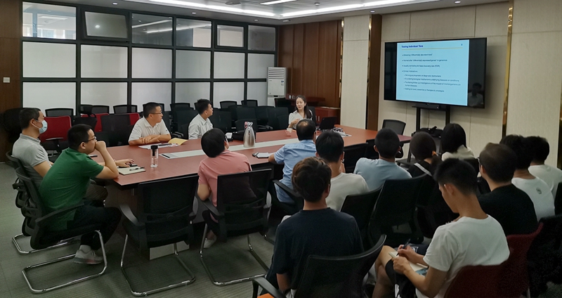 报告结束,在场老师和胡懿娟博士进行热烈讨论。李立老师与胡博士探讨了将全基因组测序应用在微生物组研究上的想法;胡学海、牛晓辉老师与胡博士讨论了LOCOM在统计算法上的一些思路。在场同学也咨询了关于人体微生物代谢组学方面的问题,胡懿娟博士给出详细回答和建议。交流会在轻松自由交流环节中结束。