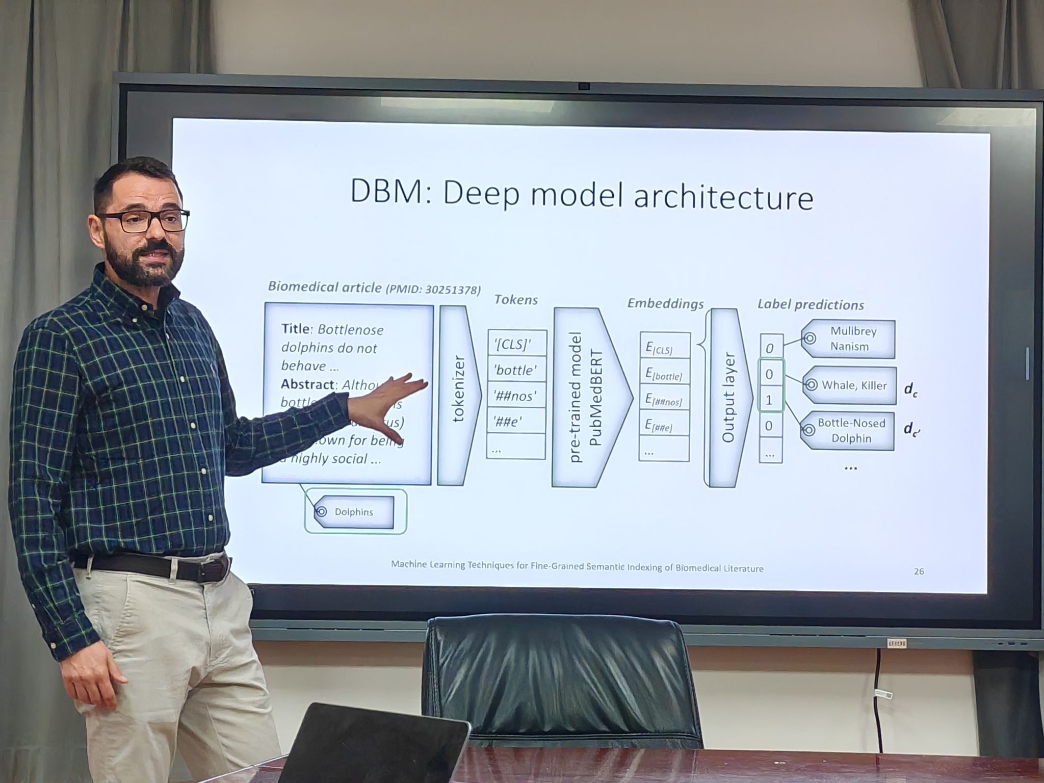 报告中,Anastasios Nentidis博士重点探讨了如何利用机器学习技术实现生物医学文献的细粒度语义索引,以解决当前医学主题词(MeSH)等索引难以区分语义相关但实际不同概念的难题。