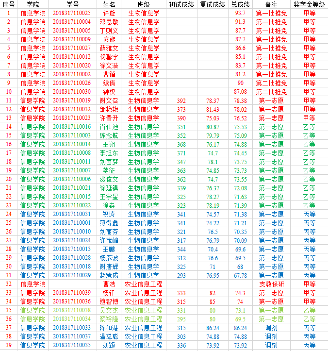 为做好2018级硕士研究生学业奖学金评审工作,根据《学校研究生学业奖学金管理办法(试行)》(校发[2014]109号)文件精神,《关于做好2018年硕士研究生学业奖学金评审工作的通知》(校发[2018]12号)等文件精神,结合明星换脸av 实际,制定学业奖学金分配办法,评选结果如下: