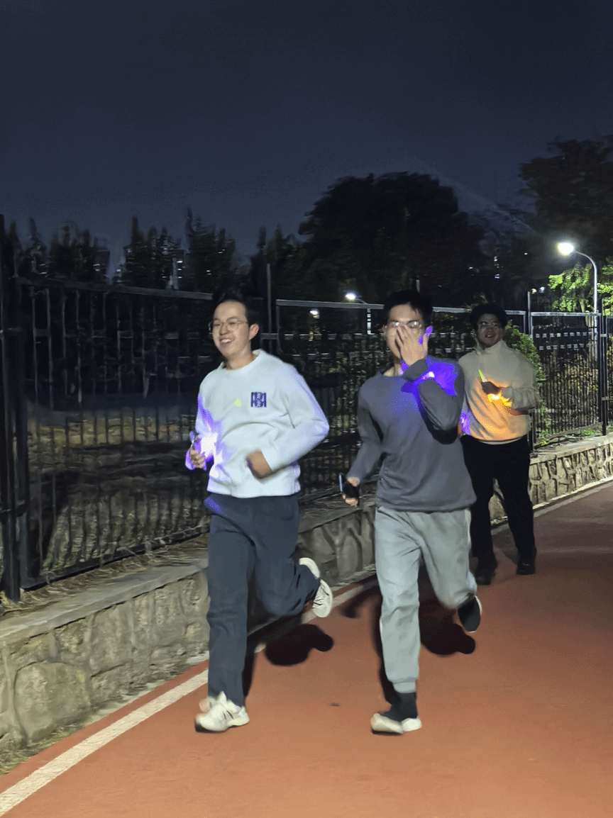 活动在乐乐园的起点正式拉开序幕,参与者们在现场领取了各式各样的荧光道具,点亮了夜晚的校园。随着活动的展开,大家沿着夜跑路线,边跑边完成打卡任务,不仅锻炼了身体,也享受到了集体互动的乐趣。每完成一个打卡任务,参与者们都更加充满激情,最终顺利到达终点。