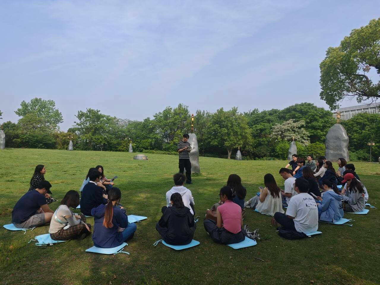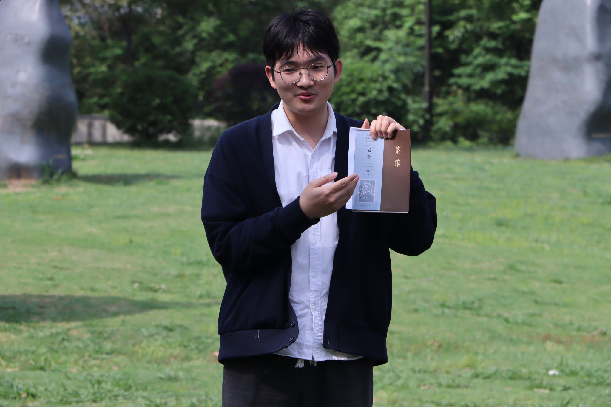 在书籍漂流环节,同学们手拿实体书,一边展示,一边分享《围城》《白鹿原》《茶馆》《我与地坛》《美学散步》《人类群星闪耀时》等经典作品。分享中同学们介绍了作品的主要内容、阅读中的体会和收获,声情并茂地诵读了精彩片段。听众们饶有兴致、若有所思,偶尔受到触动,颔首点头。二十四节气柱雨后青绿的草坪上,师生们沉浸其中,仿佛忘记了时间的流逝。随后,两校师生进行书籍交换互赠伴手礼,进一步加深了校际情谊。