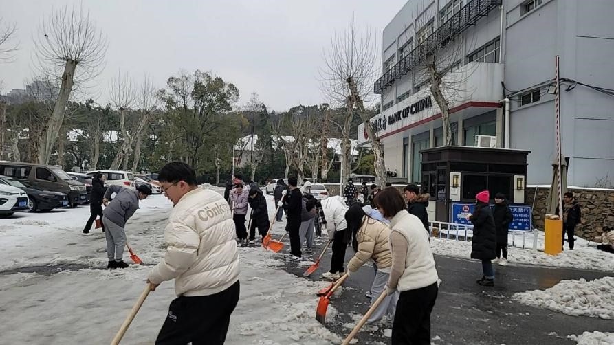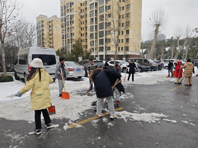 破冰通路,刻不容缓。23日下午,明星换脸av 党委书记郑学刚亲自带领在校老师和研究生志愿者一同汇聚梧桐路,展开了紧急的除冰铲雪工作。