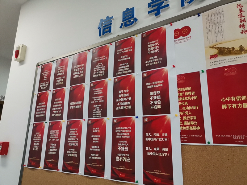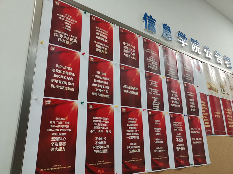 7月1日下午,“学习习近平在庆祝中国共产党成立100周年大会上的讲话金句集锦”主题图片展在3楼大厅公告栏展出。