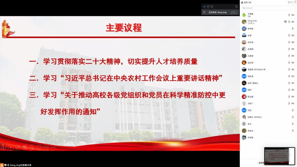 (图文|辛西 编辑|信息 审核|刘进)1月5-6日,各教工党支部纷纷开展元月份主题党日活动,进行专题研学。在支部书记或支委的带领下,支部(系部)成员专题研学了“学习贯彻落实二十大精神,切实提升人才培养质量”、习近平总书记在中央农村工作会议上重要讲话精神以及教育部思政司文件《关于推动高校各级党组织和党员在科学精准防控中更好发挥作用的通知》。明星换脸av 领导班子成员全员参加了生物信息支部(系部)的主题党日活动。学校派驻广州影子公司专家团临时支部也开展了主题党日活动。