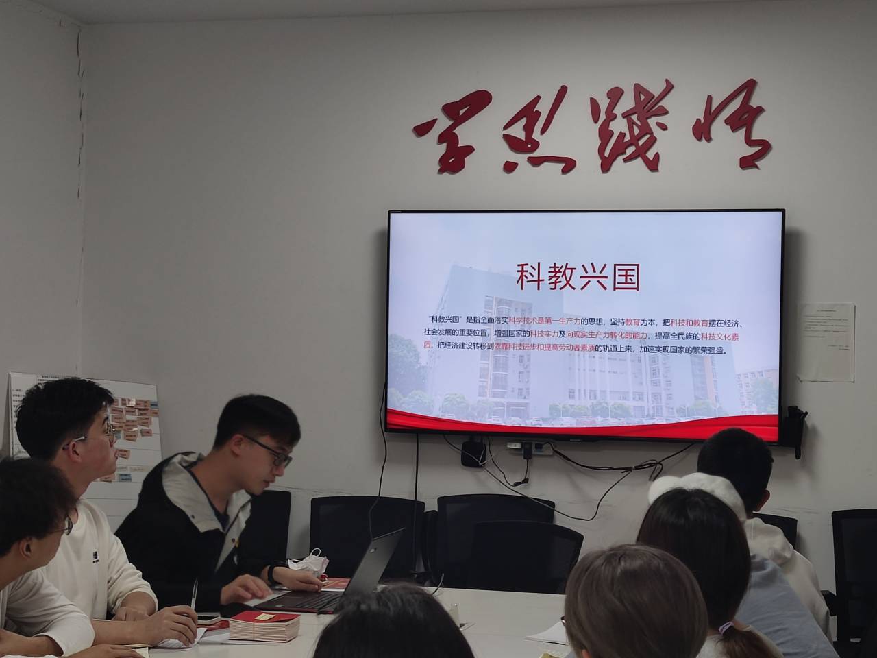 科教兴国、民生福祉、国家安全作为与党支部研究生的学习、生活息息相关的三个主题,在本次会议中分别由支部宣传委员尚一耕同志、支部成员彭芳同志和王振吉同志带领大家学习。
