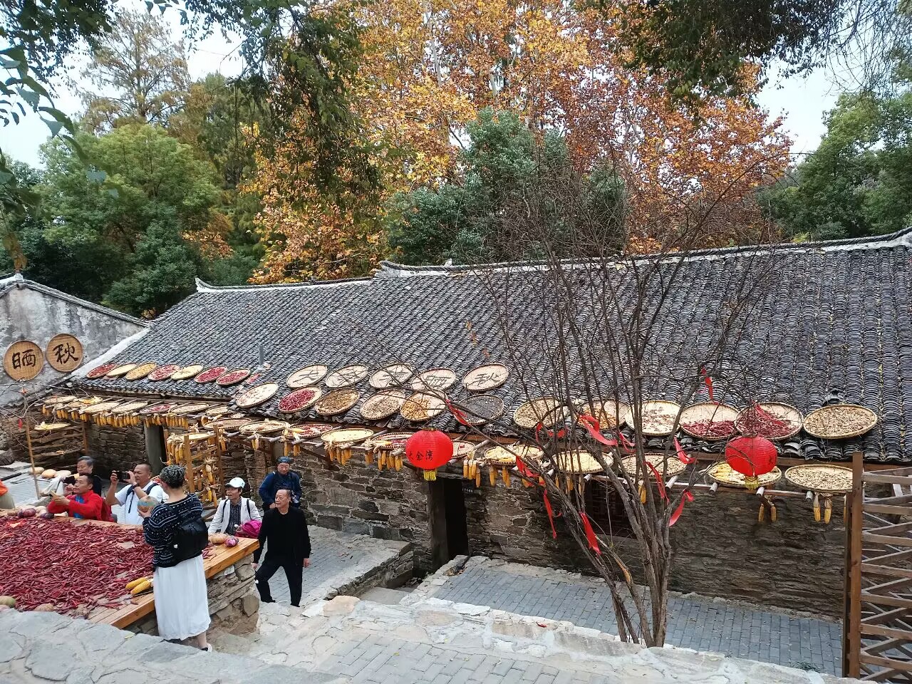 11点进入大余湾园区,大家仿佛踏入了晒秋之地,清晰地嗅到阳光与农作物混合的独特香气,能感受到劳动与收获的气场。
