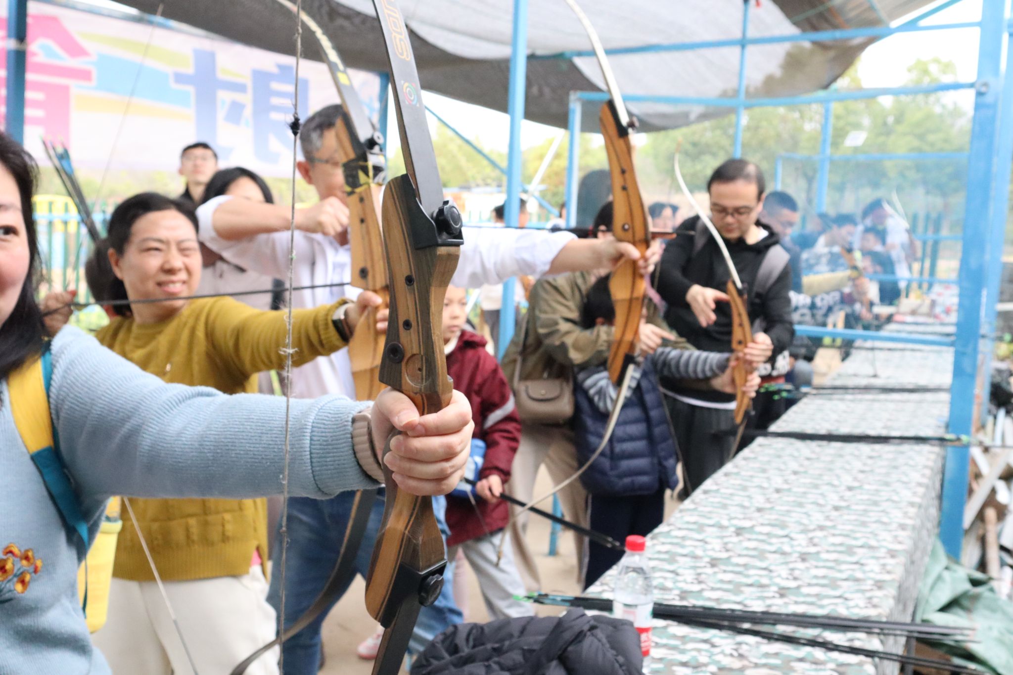 趣味射箭环节,书记郑学刚搭箭、举弓、食指和拇指捏住箭尾拉弦,撒放动作干净利落,给在场的大人孩子“打了一个样”。何红英老师,拉弓射箭,动作英姿飒爽,很有“巾帼不让须眉”的气势。