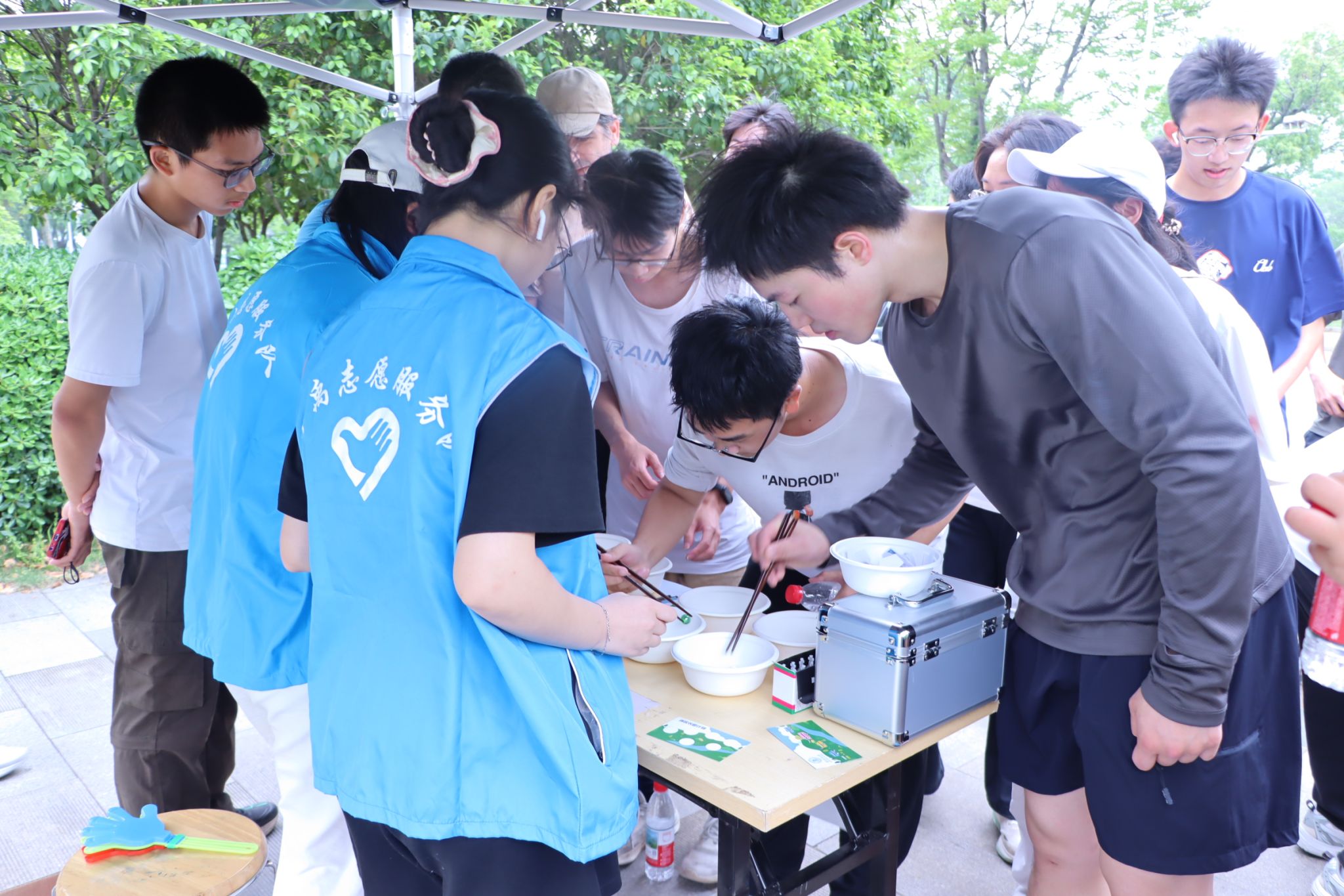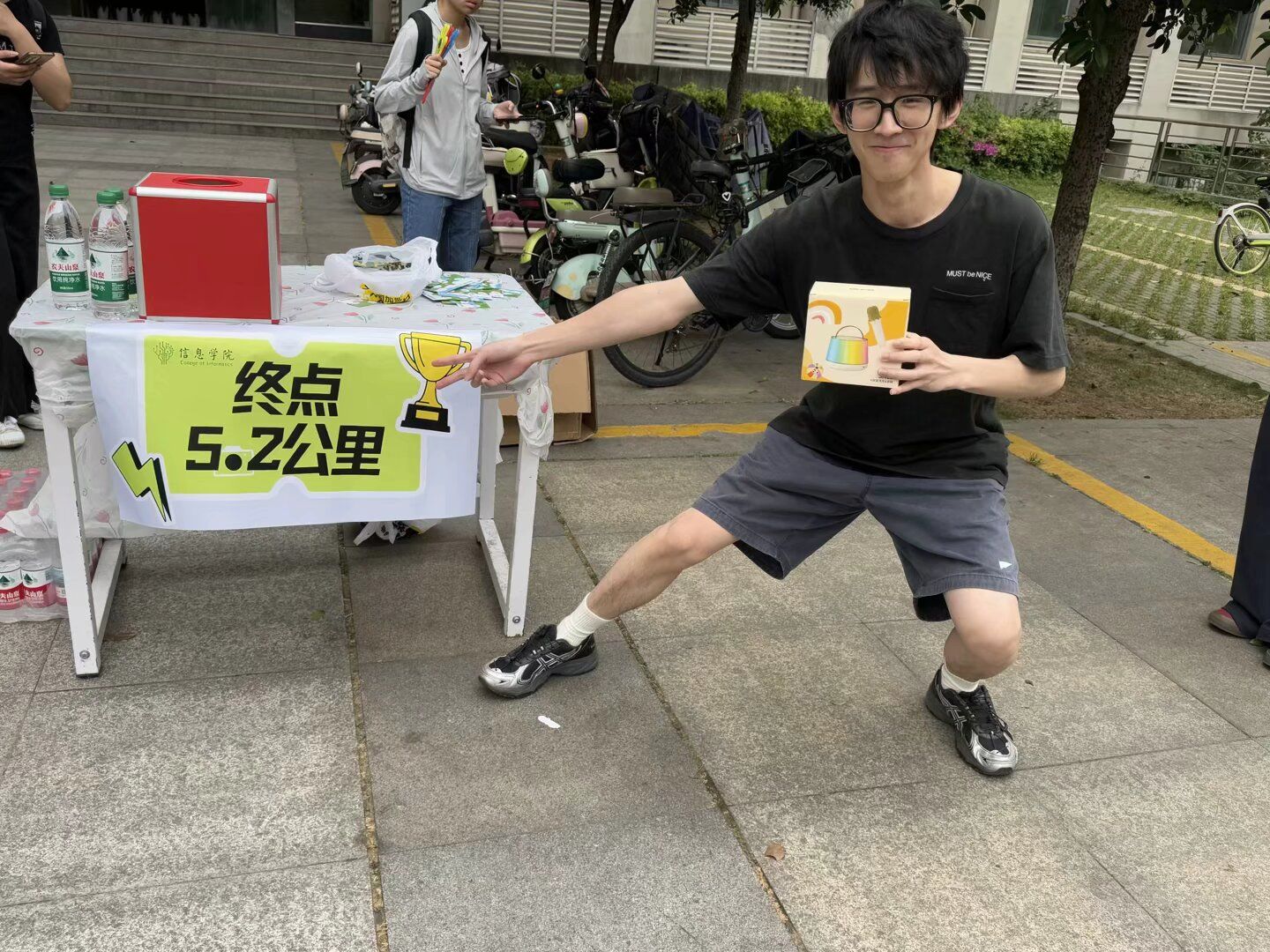 路线沿途设置多个功能区域:补给点准备了能量棒和矿泉水,供师生随时补充体力;医疗点全程值守,保障师生安全。趣味活动区热闹非凡,在 "沙包投投乐" 处,师生投中高分时,现场响起阵阵欢呼;"弹珠夹夹乐" 区域,大家手持筷子小心翼翼地尝试,欢声笑语不断。临近终点,师生们加快脚步奋力冲刺,完赛后纷纷来到抽奖区,抽取专属纪念奖品。