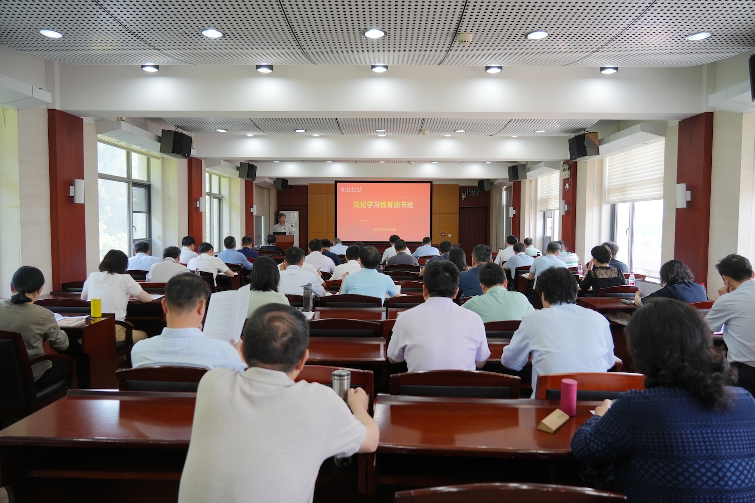 南湖新闻网讯(记者 晏华华 徐行) 5月10日,学校在行政楼五楼会议室举办党纪学习教育专题读书班,校党委书记高翅作动员讲话,校党委副书记、纪委书记廖济忠领学新修订的《中国共产党纪律处分条例》。在校校领导,各二级基层党组织书记,机关党委所属党总支、党支部书记,党务部门、工会、团委主要负责同志参加读书班学习。