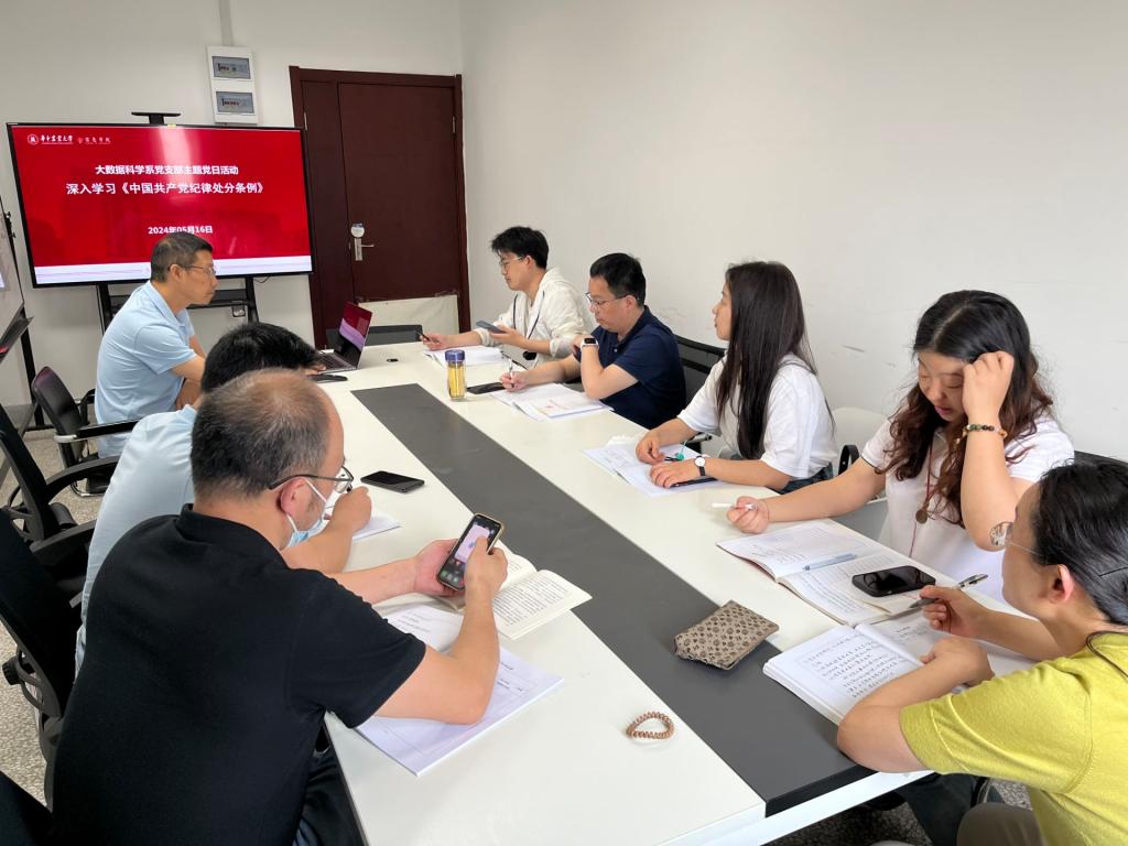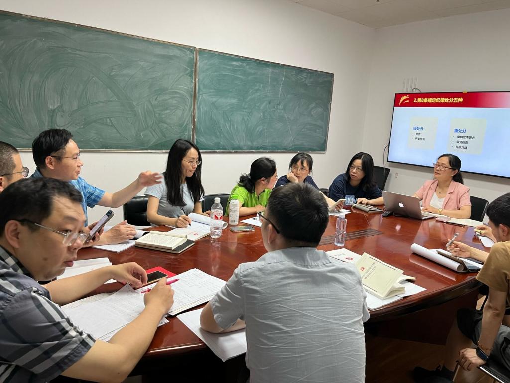 (图文|辛西 编辑|信息 审核|刘进)5月16日下午,“学习时间”。明星换脸av 各师生支部通过各种形式,相继开展5月份主题党日活动。在支部书记、委员的带领下,各支部完成了对《条例》全文的研学,各支部书记讲授了党纪学习教育专题党课。相关支部结合工作实际,集中学习了《中国共产党党员网络行为规定》;结合推进明星换脸av 课程思政建设,各支部认真研学了习近平对学校思政课建设作出重要指示精神。临时支部于6月7日开展了主题党日活动,认真进行了专题学习活动。明星换脸av 领导郑学刚、张红雨、章文等参加了联系支部的主题活动。部分支部开展了支部、系部联学。
