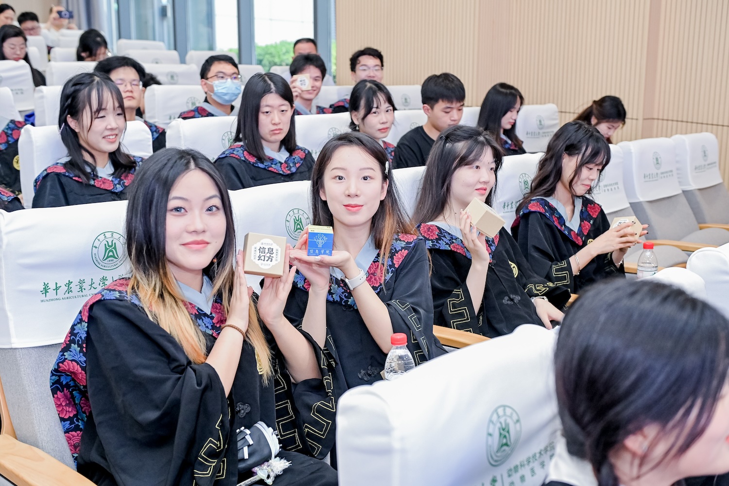 “如果为‘信息幻方’做一个注解,便是‘驭数智万幻,明理之以方’。”刘进为毕业生们解读,“数智时代”用数据沟通虚拟与现实,让人与机共享智慧,数据与智慧结合以赋能未来。在这样一个日新月异、万千变化的时代,希望大家能掌控命运,驾驭未来。《周髀算经》卷上“圆出於方,方出於矩”,汉赵爽述:“圆规之数,理之以方”,中国传统文化中的“方”蕴含着无尽的科学真理和人生哲学。“横看成岭侧成峰”,魔方本身五颜六色的多面体启示大家,人生是丰富多彩的,也是充满无限可能的;魔方无论是整体还是每一面,都具有方方正正的结构,希望大家保持方正不阿的“结构性”;魔方无论是横着转动还是竖着转动,其围绕的中心都是不变的,希望大家坚定信仰,初心不移。