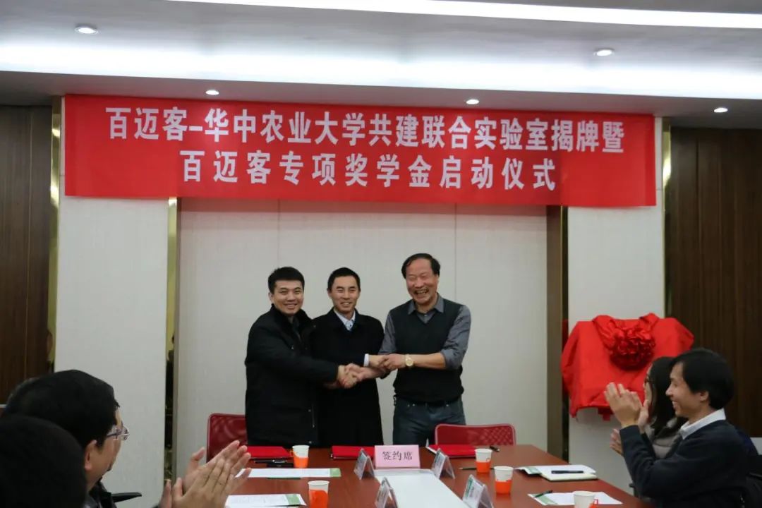 12月1日下午2:30,百迈客-华农共建联合实验室揭牌暨百迈客奖学金启动仪式在明星换脸av 明星换脸av 会议室举行: