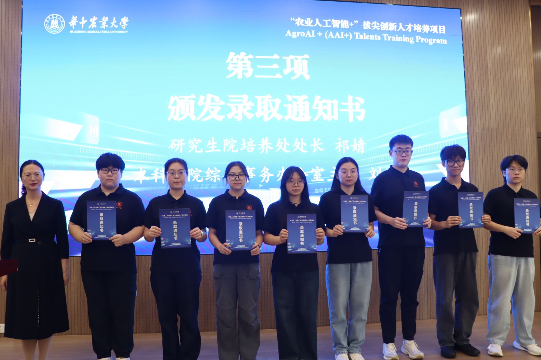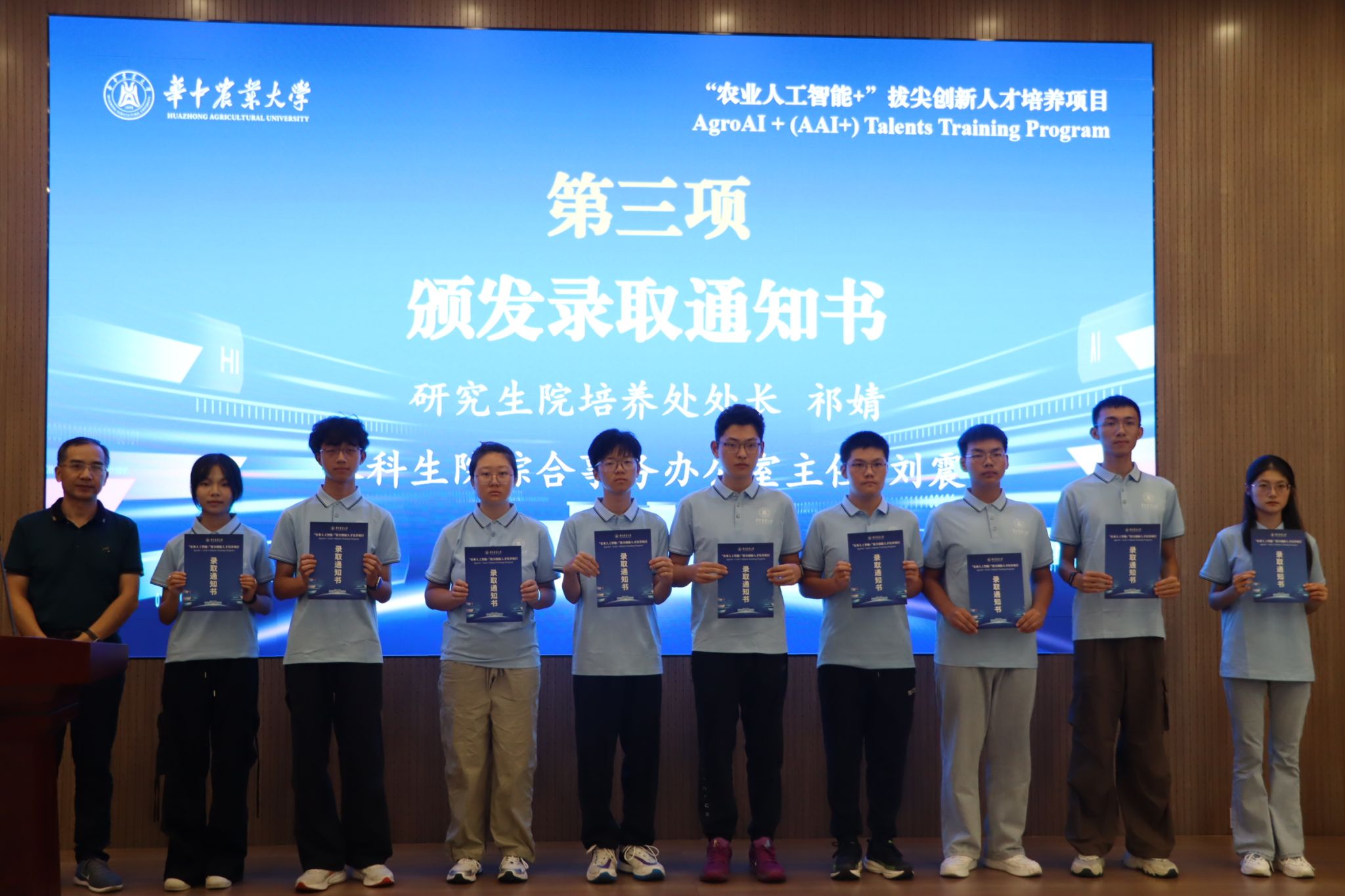 “农业人工智能+”拔尖创新人才培养项目(AgroAI+ Talents Training Program)(简称AAI+)是落实学校第十一次党代会精神,加速推进人工智能与农业、大生命科学的深度交叉融合,培养一批“人工智能+农业”学科交叉拔尖创新人才的战略举措。围绕农业科学某一学科领域的真实科学问题或产业问题为选题,突出“基础知识+底盘技术+场景应用”的融合创新,开展以农业应用场景驱动的项目制本博贯通一流人才培养模式,培养学生利用人工智能解决农业应用场景实际问题的创新能力。该项目实施“交叉性、个性化、场景化”的教育教学,以“农业人工智能+”交叉项目为基础遴选指导教师,全程实施导师组指导,每位研究生至少配备1名明星换脸av 导师和1名相关农业、生命学科的导师,开展交叉课题研究。该项目自今年上半年启动以来,已陆续通过考核遴选了21名硕博连读转博生、30名推免直博生。2025级本科新生入学后,该项目经过宣讲报名、资格审查和初筛、笔试、面试和公示等环节,面向全校择优遴选了56名学生组建了2025级农业人工智能+两个本科班级。