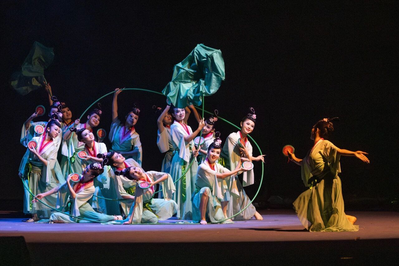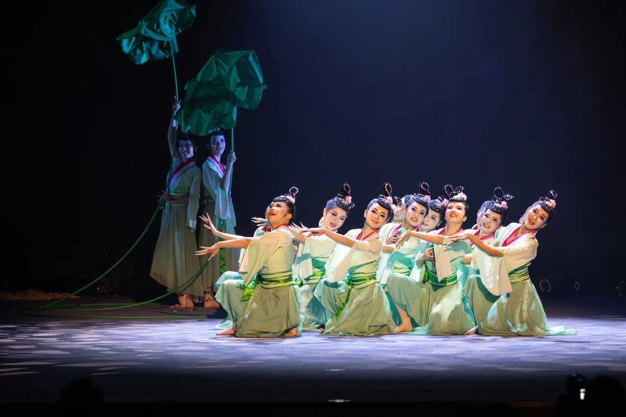 随着鼓点渐起,其余舞者有序加入,队形变幻间,既再现了传统舞蹈中经典的编排精髓,又通过富有现代感的衔接方式,让古老的舞蹈语言焕发出新的活力。当舞蹈进入高潮,全体舞者围绕鼓形道具整齐起舞,莲影交织、鼓韵铿锵,不仅展现出团队的默契配合,更象征着传统文化在代代相传中不断汇聚力量、生生不息。