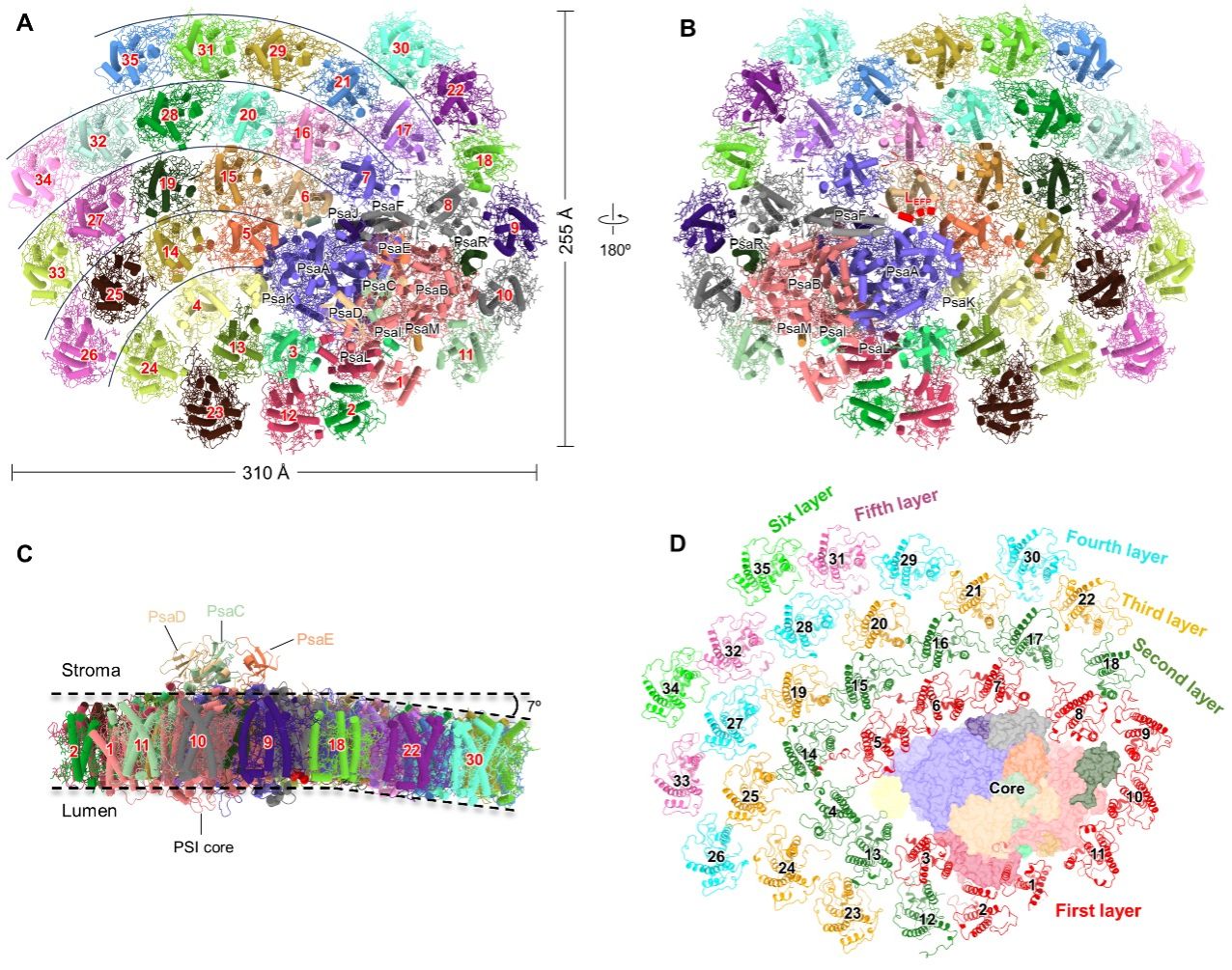 图1 颗石藻PSI–LHCI超复合体的整体结构