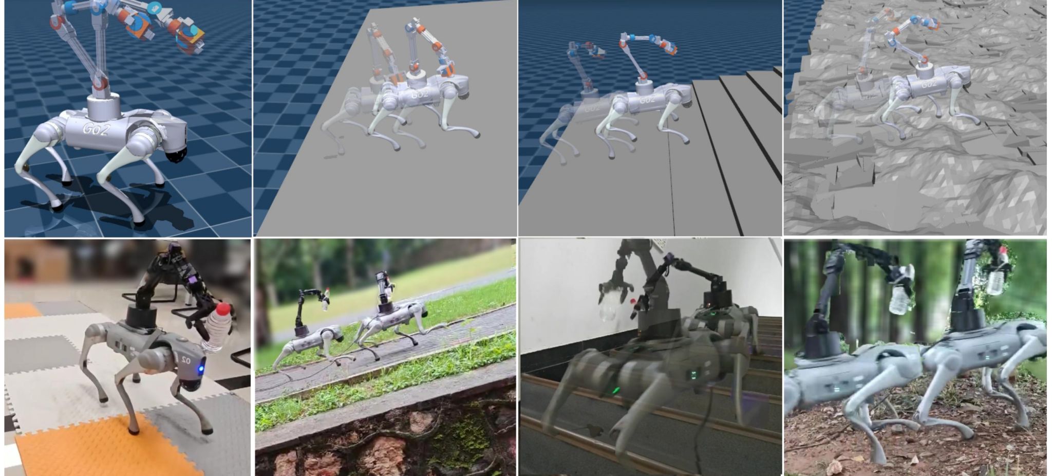 当四足机器人在复杂地形执行物资运输、搜索救援等任务时,如何维持其稳定性是一个巨大挑战。特别是当负载具有“主动性”和“动态性”时——例如在机器人背部加装一个正在作业的机械臂,其质量分布和质心会随着机械臂的运动实时发生变化。这种主动负载产生的动态扰动,与复杂地形引起的姿态扰动叠加,形成了复杂的“地形-负载”双重扰动。