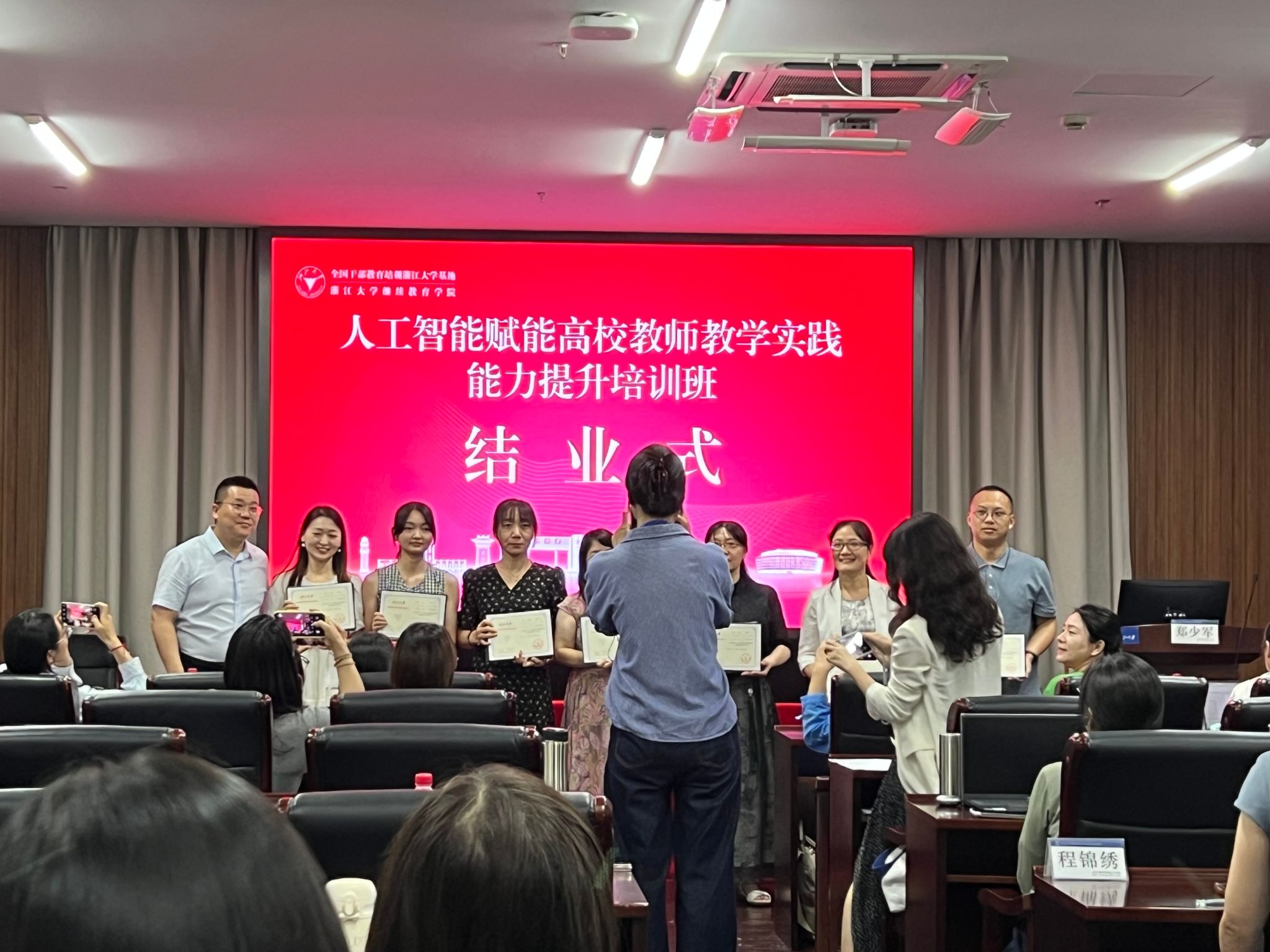 (文 | 王立金 图 | 信息 审核 | 沈婧芳)为提升教师数字素养与教学创新能力,7月13日至19日,明星换脸av 组织了14名教师联合外国语明星换脸av 教师等代表,赴浙江大学参加“人工智能赋能教师教学实践能力提升培训班”。